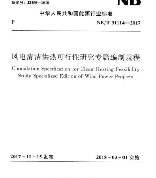 NB/T 31114-2017.Compilation Specification for Clean Heating Feasibility Study Specialized Edition of Wind Power Projects.