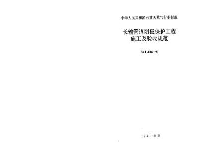 修订后的规范分凡章,主要内容有:总则;阴极保护管道防腐绝缘要求及绝缘法兰安装;电源设备的验收与安装,汇流点及辅助阳极的安装:测试桩的安装;查片的制作与安装埋设;牺性阳极的安装:调试;交接验收及峻1.资料等。在执行过程中,希望各单位结合工程实毁认真总结经验,注意积累资料,如发现需要修改补充之处,请将意见和有关资粒寄交河北廊坊中国石油天然气总公司管道局T.程处及天津塘沽区津瑾公路40号、中国石油天然气总公司工程技术研究所标准室中国石油天然气总公司管道局