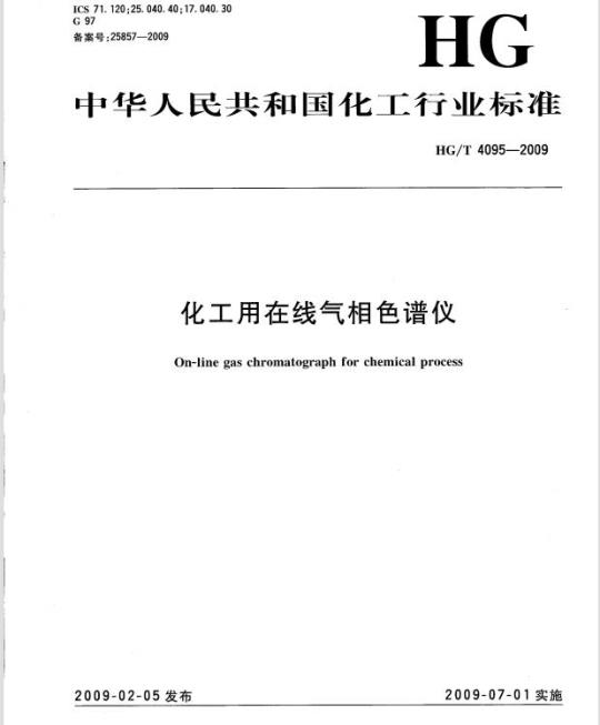HG/T 4095适用于安装有热导检测器(TCD)或氢火焰离子化检测器(FID)的化工用在线工业气相色谱仪(以下简称仪器)。