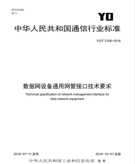 YD/T 3108-2016.Technical specification of network management interface for data network equipment.