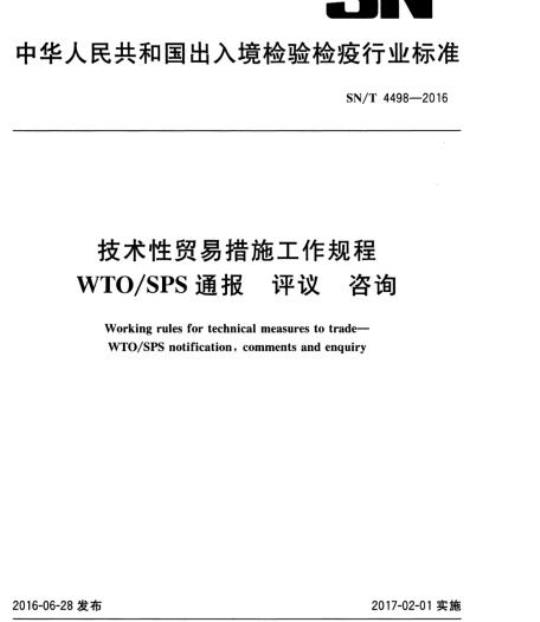 SN/T 4498适用于中国执行WTO/SPS措施的通报、评议及咨询活动。