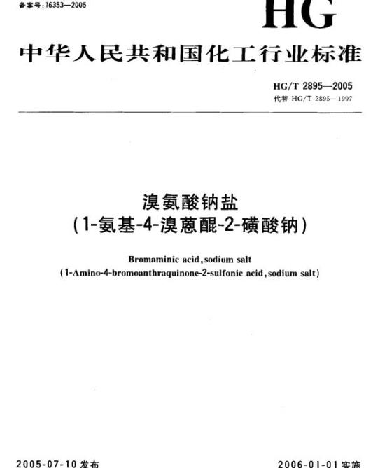 中文名称:代替 HG/T 2895-1997 溴氨酸钠盐(1-氨基-4-溴蒽醌-2-磺酸钠)