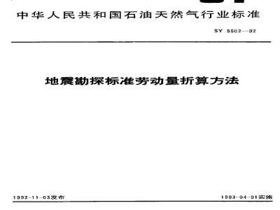 中华人民共和国石油天然气行业标准地震勘探标准劳动量折算方法