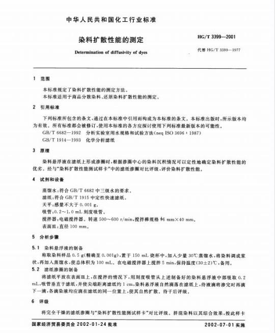 HG/T 3399-2001.Determination of diffusivity of dyes.