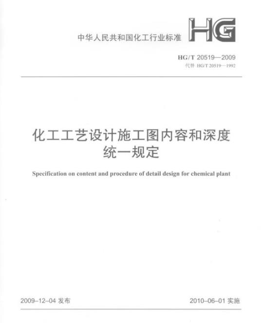Specification on content and procedure of detail design for chemical plantHG/T20519--2009