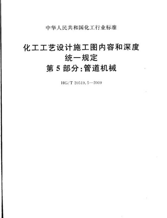 化工工艺设计施工图内容和深度统一规定第4部分:管道布置HG/T20519.52009化工工艺设计施工图内容和深度统一规定第5部分:管道机板HG/T20519.6—2009化工工艺设计施工图内容和深度统规定第6部分:管道材料