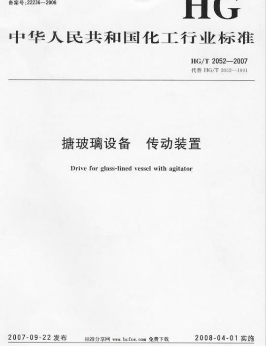 中文名称:代替 HG/T 2052-1991 搪玻璃设备 传动装置