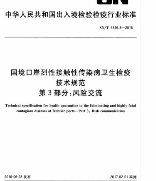 SN/T 4346.3适用于国境口岸烈性接触性传染病的风险交流。