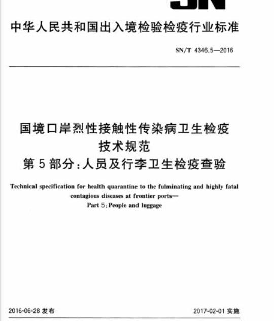 SN/T 4346.5适用于国境口岸烈性接触性传染病人员及行李的卫生检疫查验。