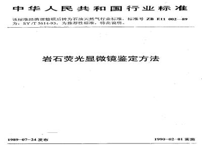该标准经清理整顿后转为石油天然气行业标准,标准号ZBE11002—89为:SY/T5614-93,为推荐性标准,特此说明。岩石荧光显微镜鉴定方法