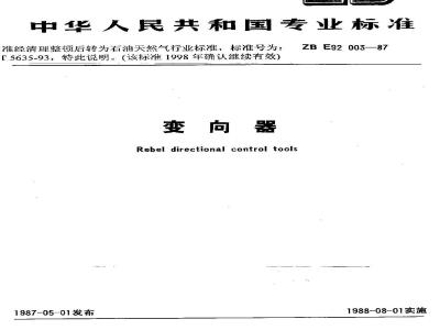 准经清理整顿后转为石油天然气行业标准,标准号为:ZBE92003—87[5635-93,特此说明。(该标准1998年确认继续有效)变向器