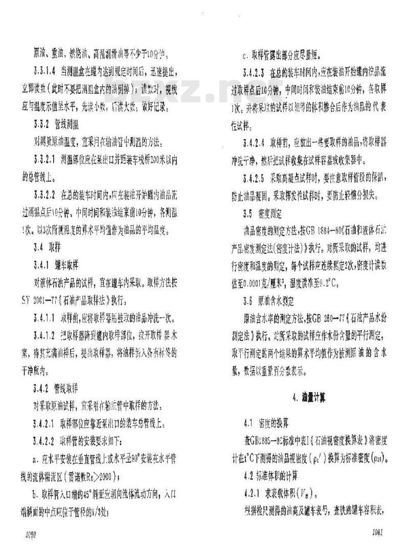 封铁路罐车装运的一般泄品,不进行髓内底水的测量。若对特殊油品要求测罐内底水时,所使用的计量器具与底水检尺的操作方法应符合SYLOL--83石油及液体石油产品立式金属罐交接计量规程》的有关规定3.3测温