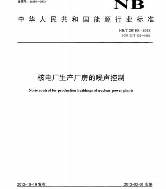 NB/T 20190适用于核电厂生产厂房和工作场所的噪声控制。