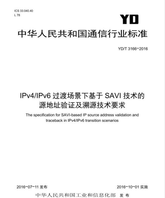 中文名称:IPv4/IPv6 过渡场景下基于 SAVI 技术的源地址验证及溯源技术要求