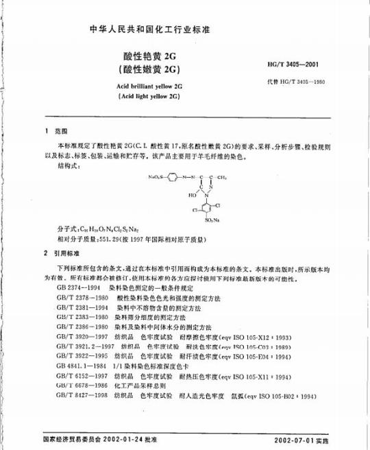 HG/T 3405-2001.Acid brilliant yellow 2G(Acid light yellow 2G}.