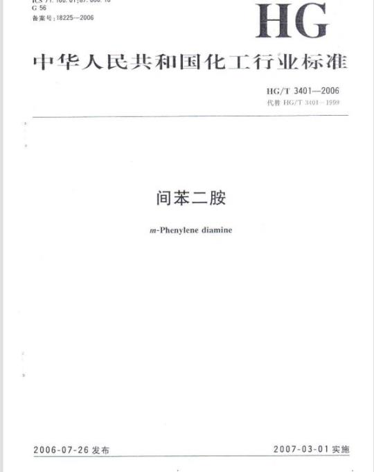 本标准代替HG/T3401-1999《间苯二胺》。本标准与HG/T34011999相比主要变化如下:HG/T3401-2006