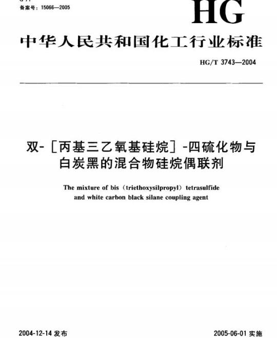 HG/T 3743适用于双-[丙基三乙氧基硅烷]-四硫化物与白炭黑复配制成的硅烷偶联剂。