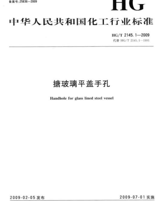 中文名称:代替 HG/T 2145.1-1991 搪玻璃平盖手孔