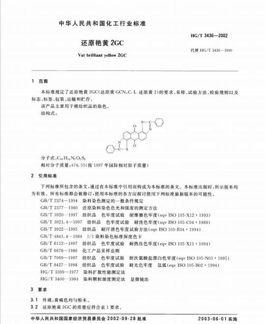 HG/T 3436-2002.Vat billiant yellow 2GC.