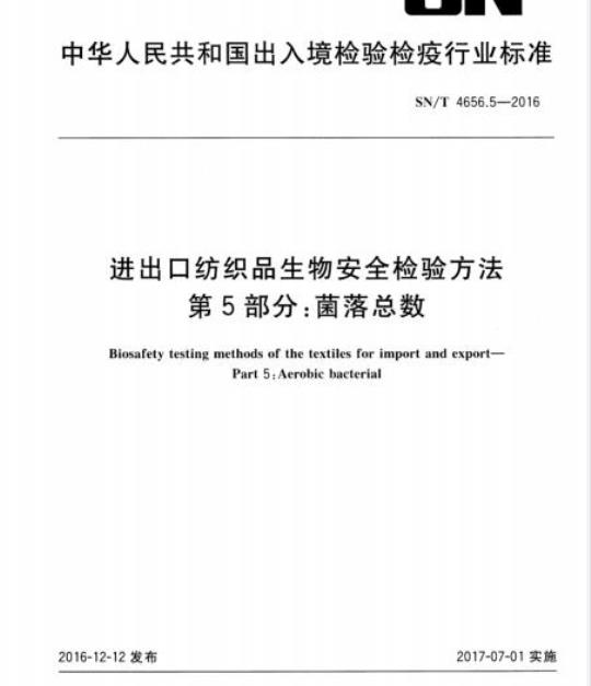 SN/T 4656.5规定了进出口纺织品中菌落总数的检验方法。