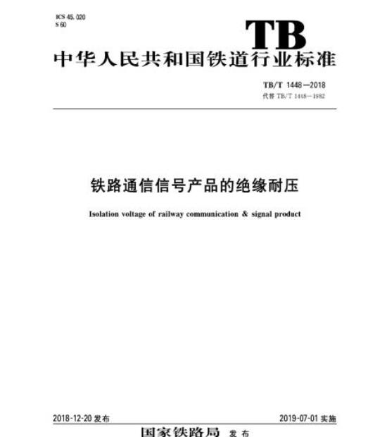 TB/T 1448规定了铁路通信信号电工、电气电子类产品的绝缘耐压以及相关的试验方法。