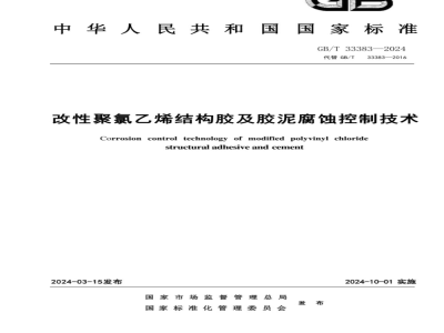 改性聚氯乙烯结构胶及胶泥腐蚀控制技术本文件规定了改性聚氯乙烯结构胶及胶泥腐蚀控制的技术要求和资料管理。T33383—2024