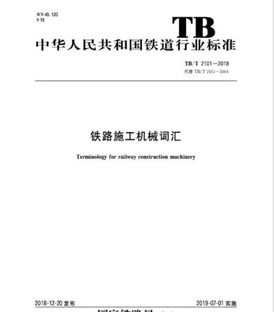 TB/T 2101规定了铁路施工机械的主要术语和定义。