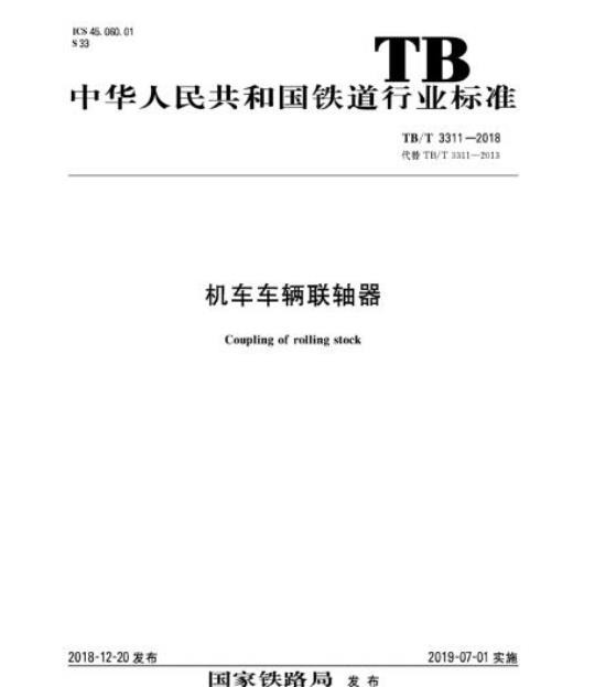 修改了出厂检验要求、型式检验要求(见6.2和6.3,2013年版的6.2和6.3);-增加了端面齿联轴器检验内容及要求(见6.2);删除了试验准备、抽样和判定规则(见2013年版的6.3.2、6.3.3和6.3.4);修改了包装箱内文件要求(见7.2.2,2013年版的7.2)。本标准由铁道行业内燃机车标准化技术委员会提出并归口。本标准起草单位:中车青岛四方机车车辆股份有限公司、中车长春轨道客车股份有限公司、中车大连机车研究所有限公司、中车戚墅堰机车有限公司、中车北京二七机车有限公司、中车大连机车车辆有TB/T3311—2018