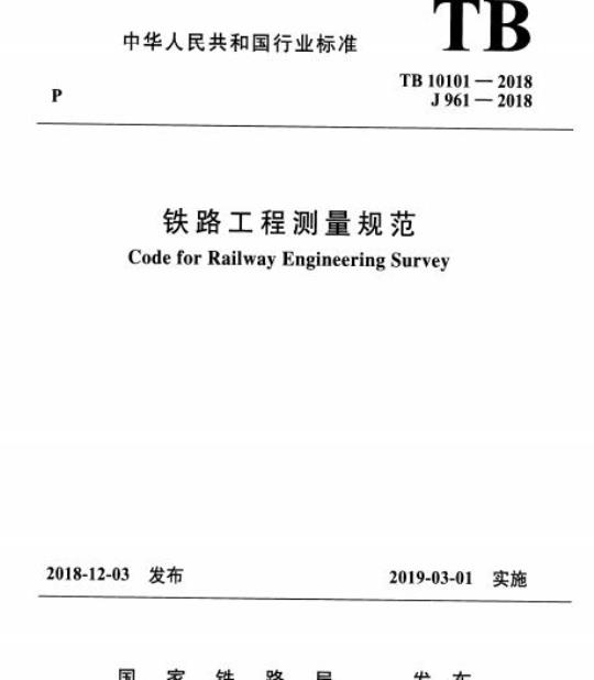 本规范是根据国家铁路局构建铁路工程建设标准体系的要求,为满足铁路建设和发展的需要,统一速度200km/h及以下铁路工程测量标准,提高铁路工程测量技术水平,保证测绘成果质量满足铁路勘测、施工、运营维护各个阶段的应用需要,在《铁路工程测量规范》TB10101一2009的基础上,总结近年来我国铁路工程测量的实践经验和科研成果,借鉴了国内外有关技术标推的规定,在广泛征求意见的基础上,全面修订而成。本规范根据我国铁路工程建设的要求,结合我国国情和测绘技术的发展,按照“技术先进成熟、安全可靠、经济适用”的原则,合理确定广不同运输性质类型、不同轨道结构类型、不同速度等级铁路工程测量的技术标准,进一止提升了规范的科学性和技术经济合理性。