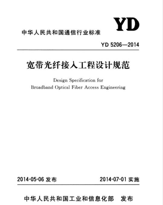 YD 5206-2014.Design Specification for Broadband Optical Fiber Access Engineering.