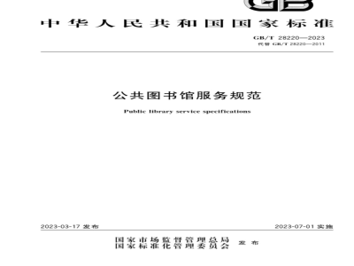近年来,《中华人民共和国公共文化服务保障法》《中华人民共和国公共图书馆法》先后颁布并实施,对公共图书馆管理、服务、业务等标准化提出了更高的要求。因此,对GB/T28220一2011进一步修订完善。