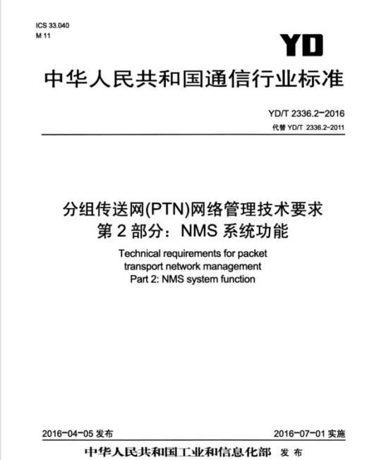 YD/T 2336.2适用于PTN网络管理系统。