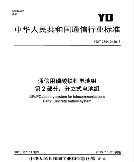 YD/T 2344.2适用于通信直流-48V供电系统中的分立式磷酸铁锂电池组,96V及以下的直流供电系统也可参照使用。