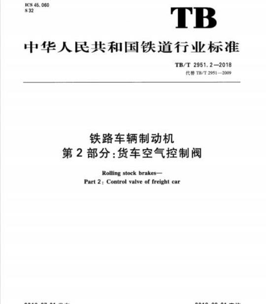 TB/T 2951.2适用于铁路货车二压力直接作用式空气控制阀(以下简称控制阀)。