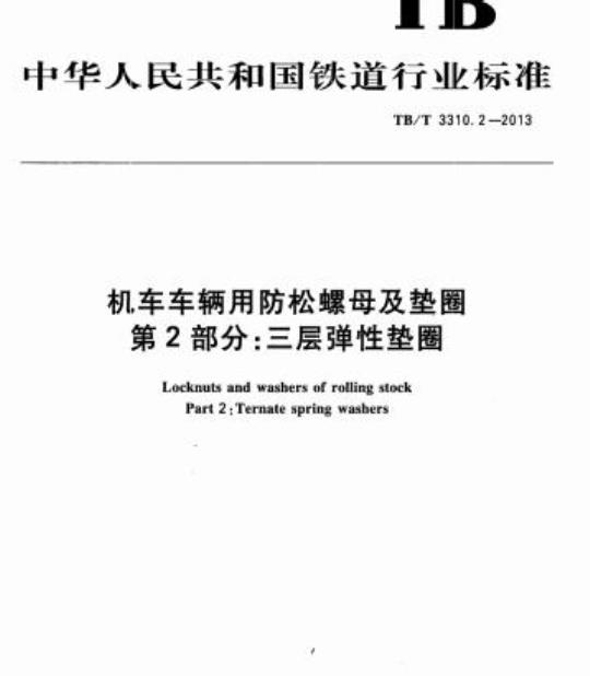 TB/T3310《机车车辆用防松螺母及垫圈》分为两个部分:-第1部分:直槽防松螺母;