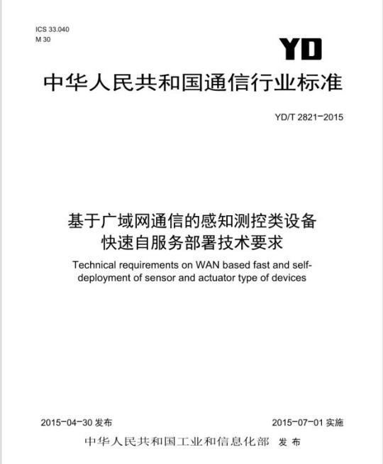 YD/T 2821适用于感知测控类设备在各种应用和场景下的快速自服务部署。