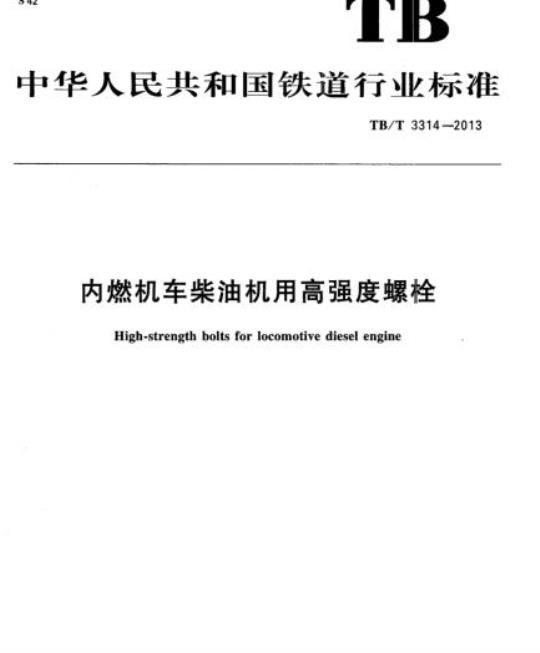 TB/T 3314适用于内燃机车柴油机连杆螺栓、主轴承螺栓、横拉螺栓、气缸盖螺栓、曲轴平衡块紧固螺栓、联轴节与曲轴紧固螺栓等。内燃动车柴油机用螺栓也可参照执行。