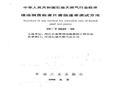 中华人民共和国石油天然气行业标准埋地钢质检查片腐蚀速率测试方法Standarrd of test method for corrosicon rate of buriedsteel test pieces
