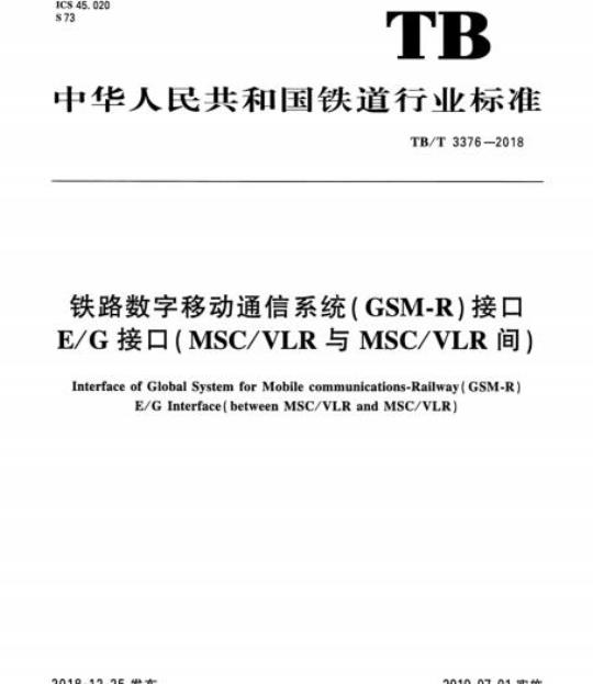 TB/T 3376-2018.Interface of Global System for Mobile communications-Railway GSM-R) E/G Interface ( between MSC/VLR and MSC/VLR).