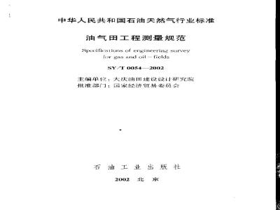本规范适用于油气田建设工程设计阶段的测绘工作,内容包括油气田的平面控制、高程控制、地形、线路工程及厂、库、站址等测量。 SY/T 0054-2002 油气田工程测量规范 SY/T0054-2002 标准下载解压密码:www.bzxz.net