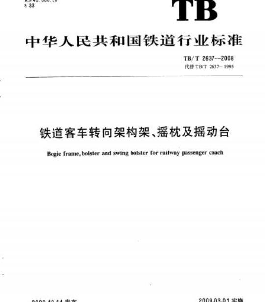 TB/T 2637-2008.Bogie frame,bolster and swing bolster for railway passenger coach.