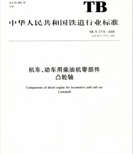 TB/T 2779规定了内燃机车、动车用柴油机凸轮轴(以下简称凸轮轴)的技术要求、检验方法、检验规则及标志、包装.运输和贮存等要求。
