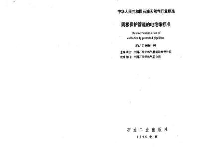 SY/T 0086-1995 阴极保护管道的电绝缘标准 SY/T0086-1995 标准下载解压密码:www.bzxz.net