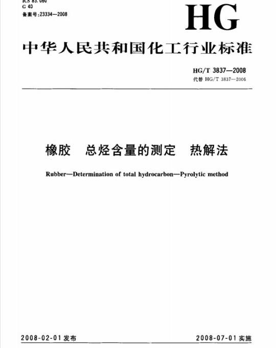 HG/T 3837规定了用热解法测定橡胶中总烃含量的方法。