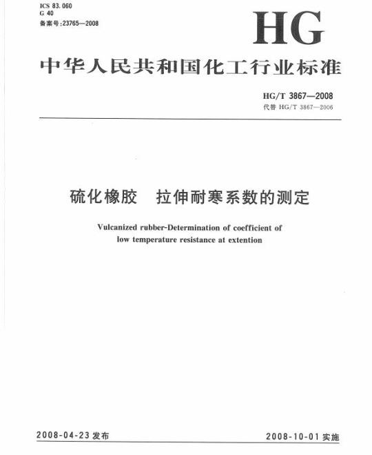 本标准代替HG/T3867--2006《硫化橡胶拉仲耐寒系数的测定》HG/T3867-2008