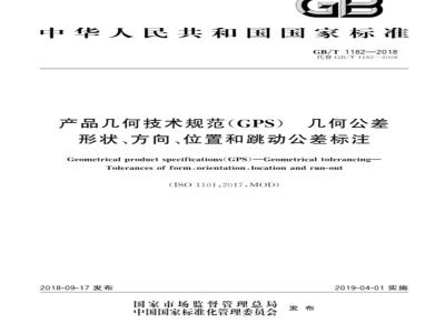 产品几何技术规范(GPS)几何公差形状、方向、位置和跳动公差标注本标准定义了工件儿何公差规范的符号及其说明的规则。本标准给出了几何公差规范的基本原则。GB/T1182—2018