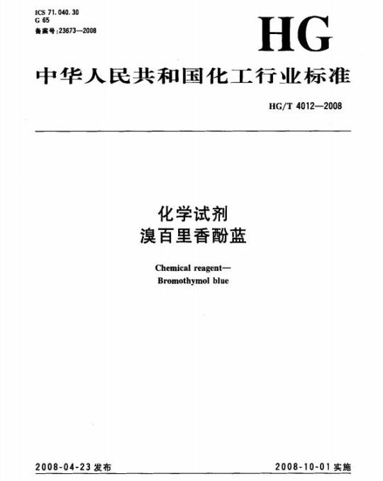 HG/T 4012-2008.Chemical reagent-Bromothymol blue.