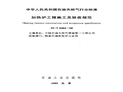 Heating furnace construction and acceptance specificationSY/T 0404---98