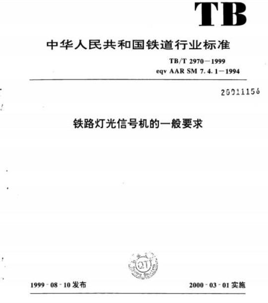 TB/T 2970适用于灯光信号机的安装、维修和测试,并可指导设计和制造。