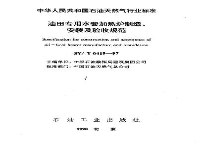 Specification for construction and acceptance ofoil - field heater manufacture and installationSY/ T0419—97